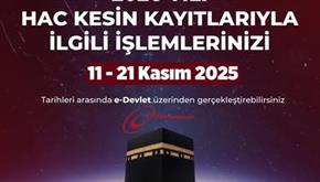 2026 HAC KESİN KAYIRLARI BAŞLIYOR 11.11.2025 "2026 Yılı Hac Kesin Kayıt İşlemleri Yarın Başlıyor" 🟩HAC KAYIT İŞLEMLERİ 2026 yılı hac kesin işlemlerinizi, 11 Kasım 2025 Salı günü Saat 09.00'dan itibaren e-Devlet üzerinden yapabilirsiniz. Detay