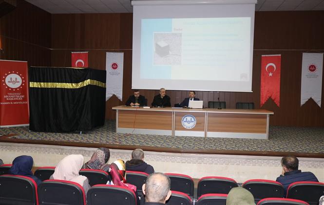 Mardin İl Müftülüğü tarafından umreye gidecek vatandaşlara yönelik bilgilendirme semineri düzenlendi. İl Müftülüğü konferans salonunda gerçekleştirilen seminerde, umrenin ifası sırasında dikkat edilmesi gereken hususlar ele alındı.