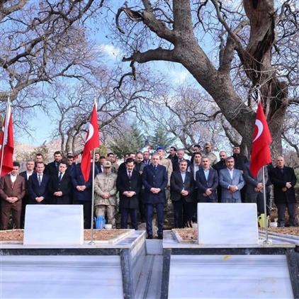 Valimiz Sayın Tuncay Akkoyun, Mardin İl Müftümüz Dr. Enver Türkmen, Vali Yardımcısı Hasan Kurt, Dargeçit Kaymakamı Muhammed Enes İpek, İl Jandarma Komutanı Tuğgeneral Tahsin Saruhan, Mardin Büyükşehir Belediyesi Genel Sekreteri Kemalettin Sakin ve beraberindeki heyet; Dargeçit ilçemize bağlı kırsal Altınoluk Mahallesinde bulunan Aziz Şehitlerimizin kabirlerini ziyaret etti.