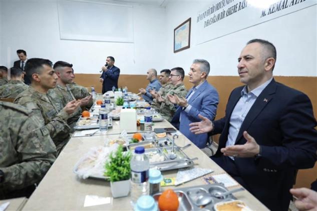 İftar programında Mehmetçiklerimizle aynı sofrayı paylaşan İl Müftüsü Dr.Türkmen,tüm güvenlik güçlerimizin mübarek Ramazan ayını tebrik etti; görevlerinde sağlık, huzur ve muvaffakiyetler temennisinde bulundu.